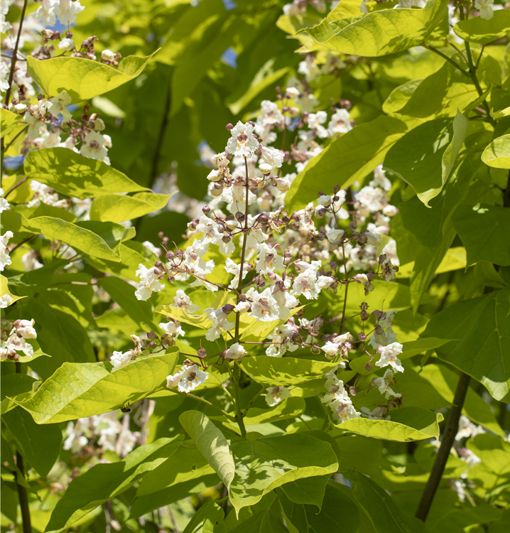 Catalpa bungei kann eine Höhe von 6 - 8 m und eine Breite von 6 - 8 m erreichen.