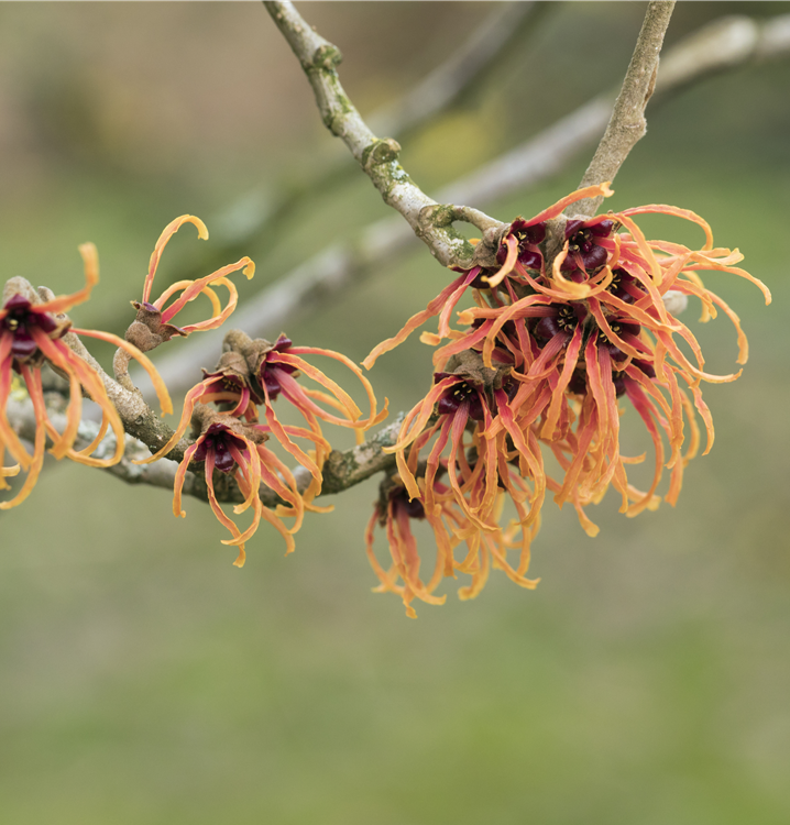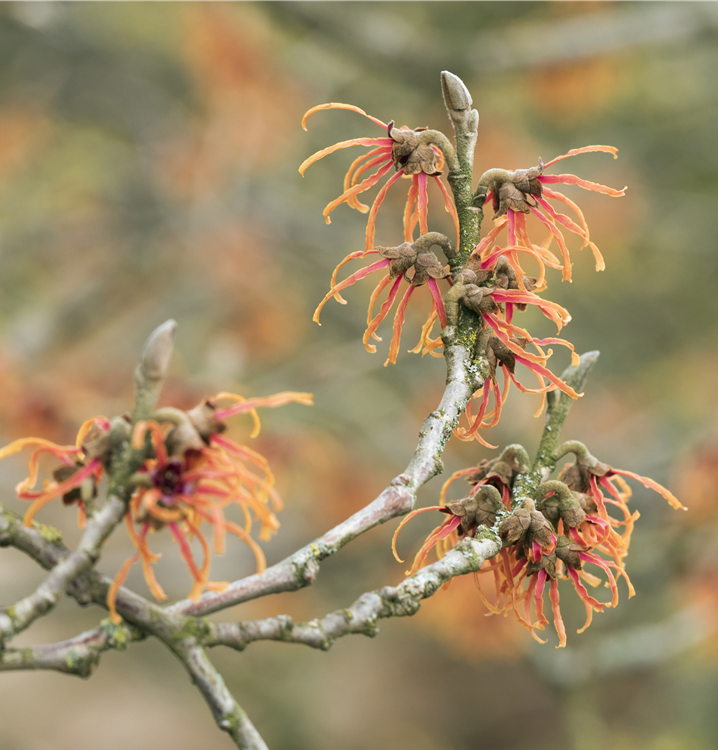 Hamamelis x intermedia 'Jelena' ist ein Flachwurzler.