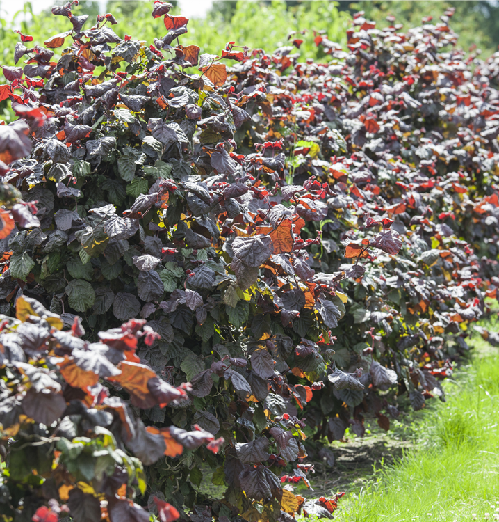 Die Großfrüchtige Waldhasel 'Rotblättrige Zellernuss' weist eine gute Frosthärte auf.