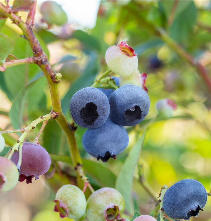 Die Heidelbeere 'Chandler' (Vaccinium corymbosum) bildet blaue Beeren. Diese sind süß-säuerlich im Geschmack. Für eine ertragreiche Ernte ab Juli schaffen humoser, sandiger, schwachsaurer Boden und ein sonniger bis halbschattiger Standort optimale Bedingungen. Ihre hellrosafarbenen Blüten sind eine schöne Erscheinung. Die Heidelbeere 'Chandler' wird mit ihrem buschigen und breiten Wuchs etwa 2 m hoch und 2 m breit, dadurch kann sie hervorragend in Töpfen auf Balkon oder Terrasse angebaut werden.