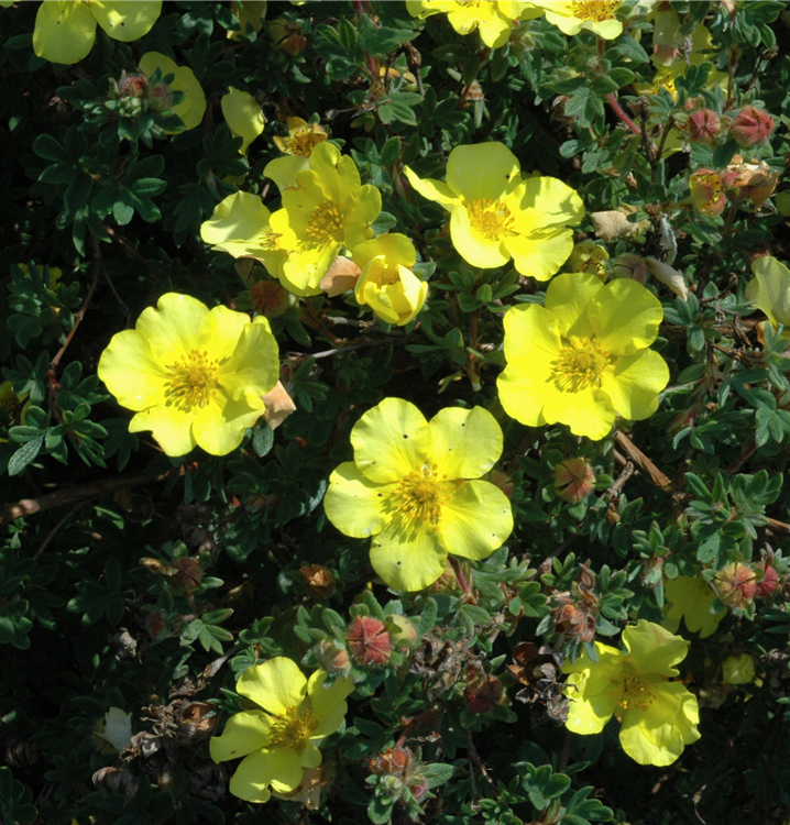 Der Niedrige Fingerstrauch 'Elizabeth' weist eine gute Frosthärte auf.