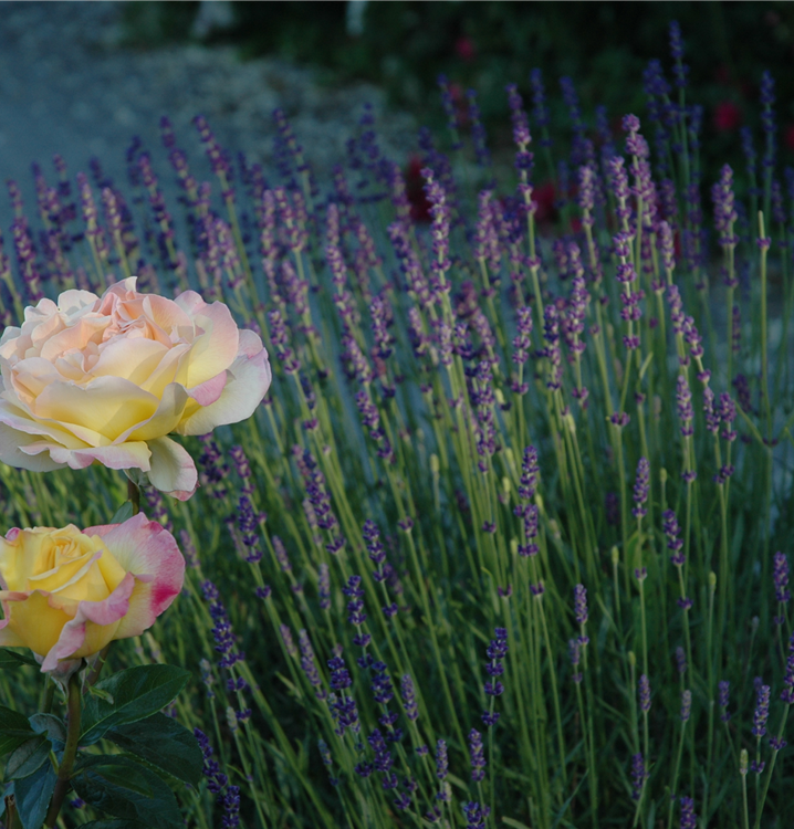 Die Edelrose 'Peace' setzt schöne Akzente gemeinsam mit: