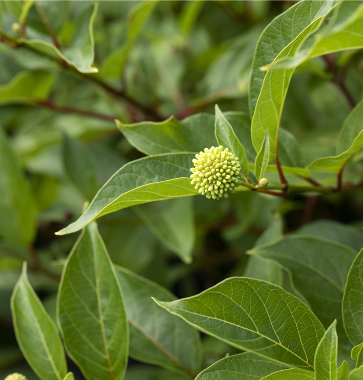 Besonders dekorativ sind die Früchte von Cephalanthus occidentalis 'Sugar Shack'.
