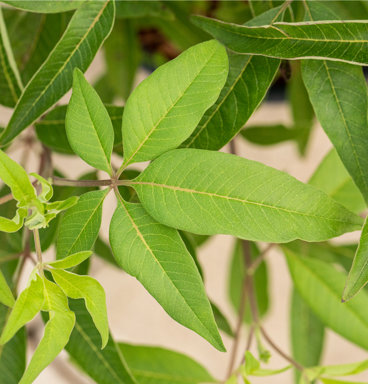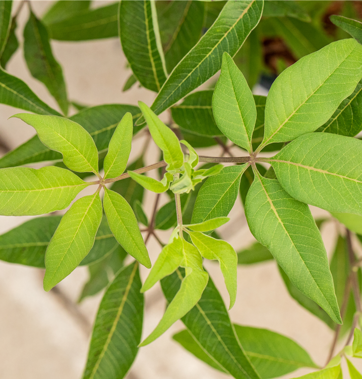 Die sommergrünen Blätter des Mönchspfeffers 'Blue Diddley'® sind mittelgrün.