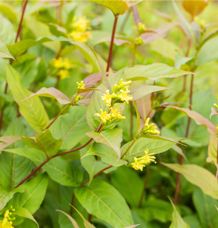 Die sommergrünen Blätter des Bach-Buschgeißblatts 'Honeybee' sind gelb.