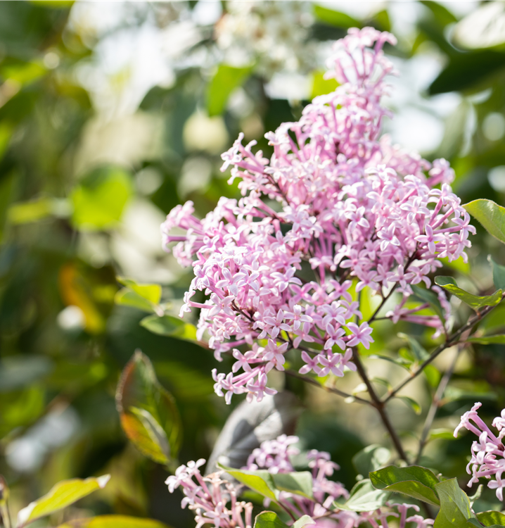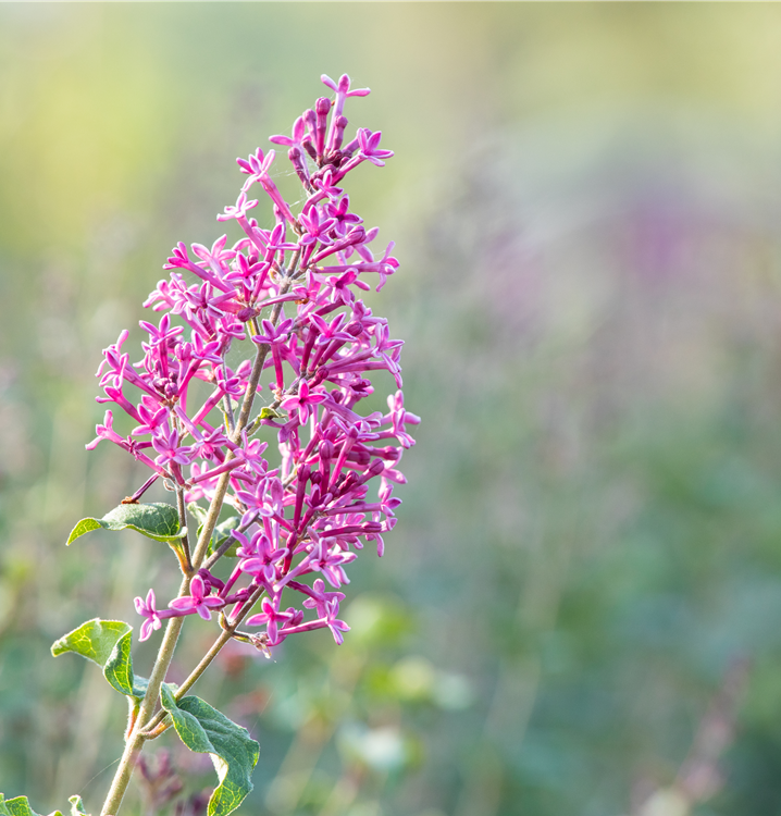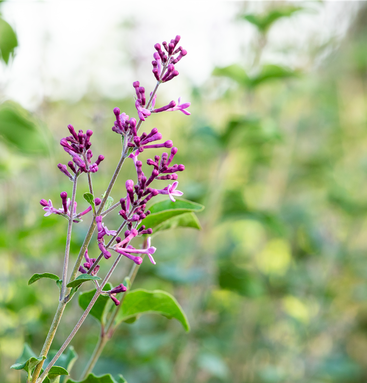 Die lilafarbenen, röhrenförmigen Blüten des Edelflieder Bloomerang® 'Dark Purple' erscheinen in Dolden von Mai bis Oktober. Diese sind angenehm duftend.
