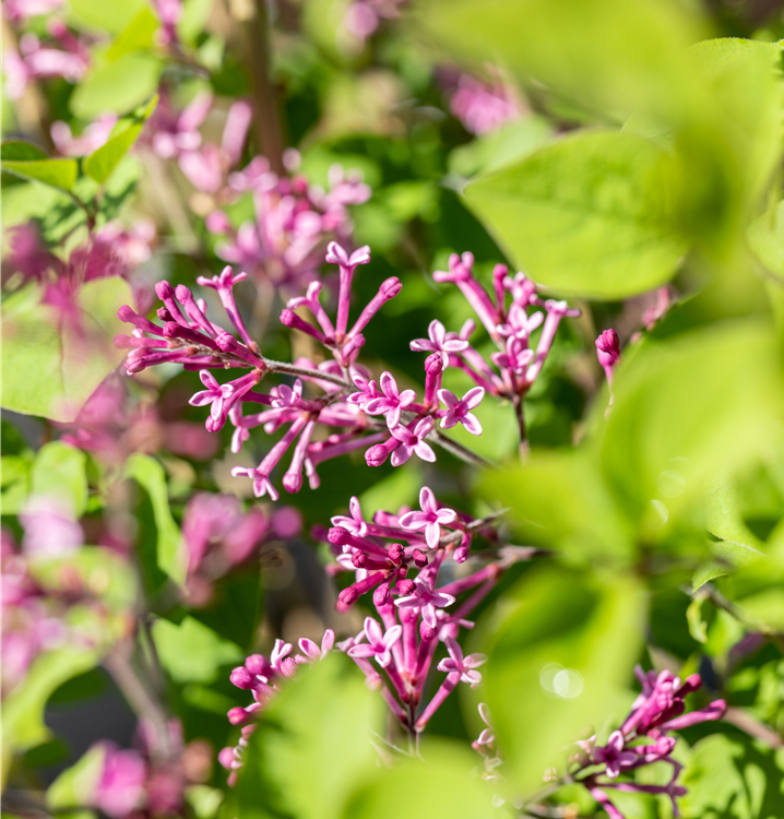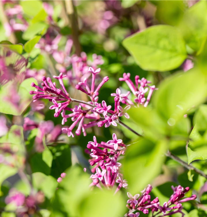 Die lilafarbenen Blüten des Meyer's Flieder 'Lillifee'®(s) erscheinen in Rispen von Ende April bis Anfang Mai. Diese sind angenehm duftend.