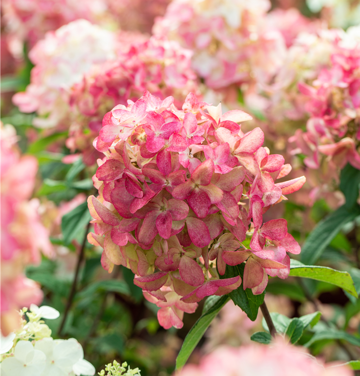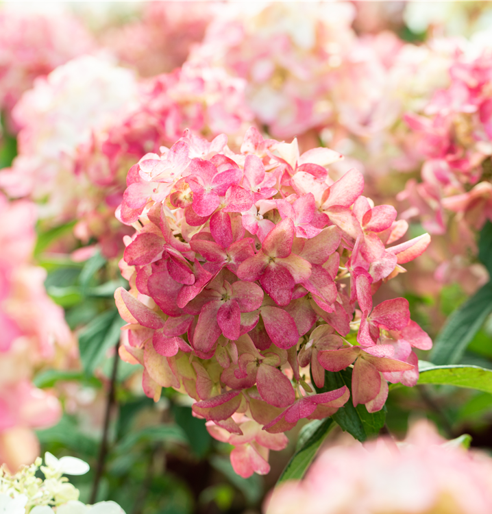 Die rosaroten Blüten der Rispenhortensie Proven Winners® 'Fire Light' erscheinen in Rispen von Juli bis September. Diese sind angenehm duftend.