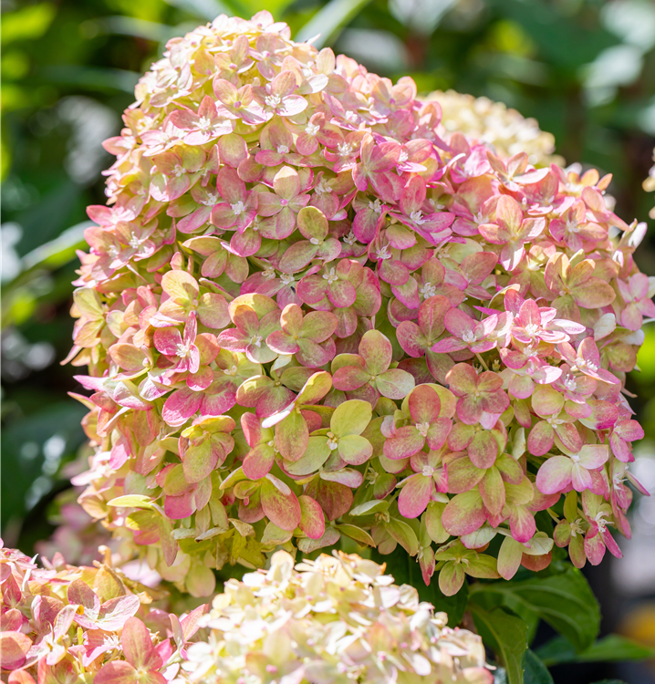 Rispenhortensie Proven Winners® 'Fire Light' ist ein buschig und rundlich wachsender Strauch. Sie erreicht gewöhnlich eine Höhe von 1,8 - 2 m und wird ca. 1,8 - 2 m breit.