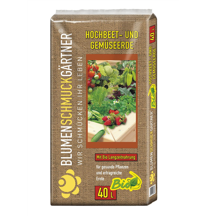 Blumenschmuck Hochbeet- und Gemüseerde ist eine gebrauchsfertige Universalerde in Gärtnerqualität mit langanhaltender Düngerwirkung zum Topfen und Pflanzen von Zimmer-, Balkon- und Kübelpflanzen.