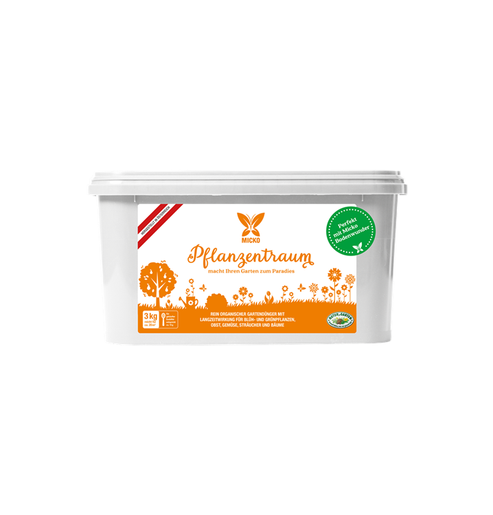 Pflanzen träumen von guten Nährstoffen, und wir Gärtner träumen von schönen, gesunden Pflanzen. Mit unserem Micko Pflanzentraum gehen Gartenträume in Erfüllung, denn der hochwertige Dünger versorgt Ihre Pflanze mit allem, was sie braucht.
