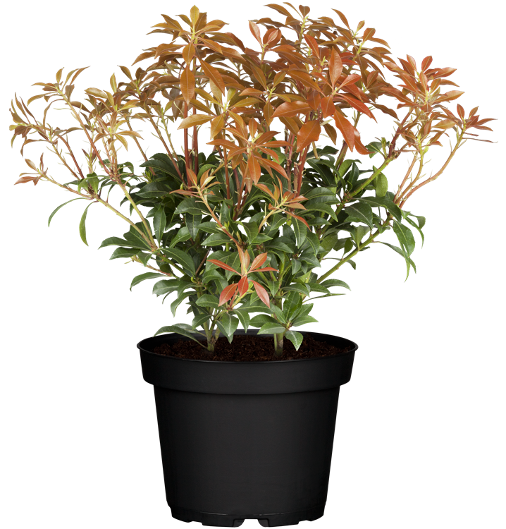 Pieris japonica 'Mountain Fire' ist ein Flachwurzler und bildet, je nach Boden, fein verzweigte Wurzeln.