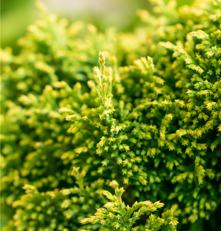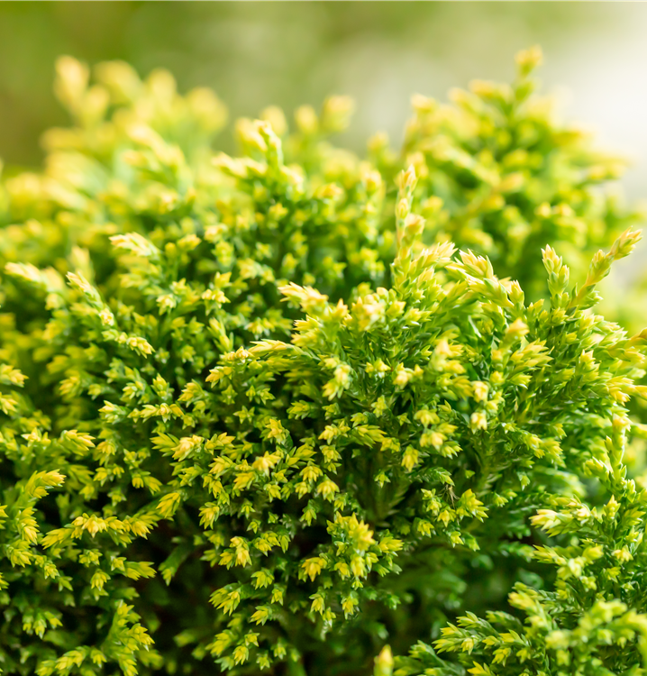 Sehr dekorativ. Die Zwerg-Mooszypresse 'Plumosa Compressa' ist immergrün. Ihre Nadeln sind gelb-grün, weich, schuppenförmig.