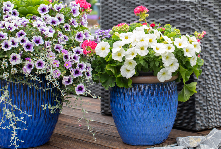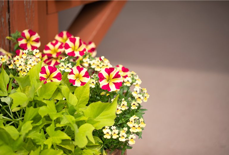 Petunien sind besonders beliebt, wenn es um die Bepflanzung von Kübeln, Schalen und Balkonkästen geht. Ihr üppiger Wuchs und die vielen Blüten sind es, die sie bei Pflanzenliebhabern so beliebt machen. Dabei hat man die Wahl, wie die Blütenpflanzen eingesetzt werden sollen. Sowohl als Solitär als auch als Unterpflanzung machen die Blumen eine sehr gute Figur. Vor allem andere einjährige Sommerblüher sind es, die zusammen mit Petunien im Garten für gute Laune und farbenfrohe Akzente sorgen. Geeignete Nachbarn für die Petunie sind Geranien, Dahlien, Fuchsien, Lobelien und Tagetes. Aber auch Rosen und Wandelröschen sind die perfekten Nachbarn. Und nicht nur das: Petunien gehören zu den absoluten Klassikern im Bauerngarten. Daher machen sie auch neben frischen Kräutern und Gemüsepflanzen eine richtig gute Figur. In Trögen, Wannen oder Kisten kommt der rustikale Charme noch mehr zur Geltung und neben Blattschmuckpflanzen wie Buntnesseln oder Gundermann kommen die bunten Blüten noch besser zur Geltung. Der Sommer hat so viel zu bieten und Petunien sind mit ihren Blüten ganz vorne mit dabei!