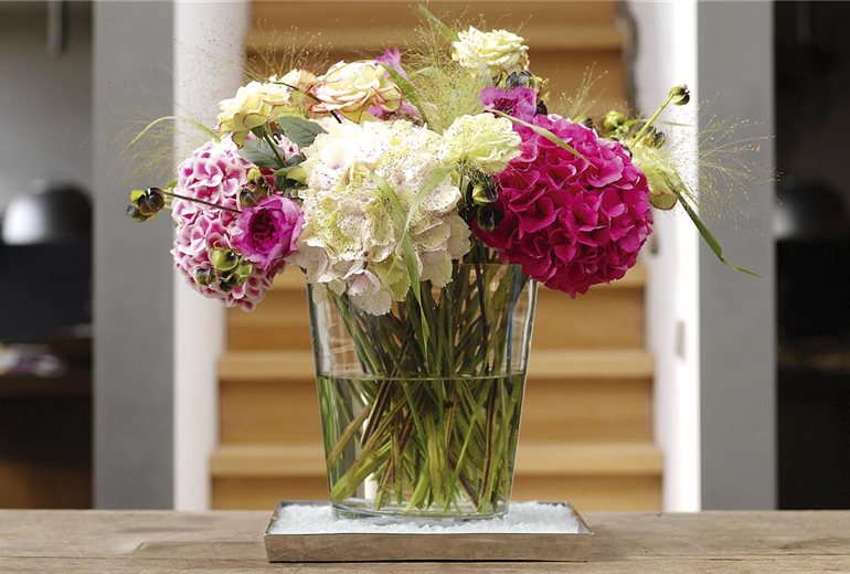 • Kampf den Bakterien: Bakterien lieben frische Schnittstellen. Mit sauberem Werkzeug halten Sie die Plagegeister von Anfang an in Schach. Schneiden Sie die Stängel alle paar Tage wieder neu an, das verlängert die Haltbarkeit.