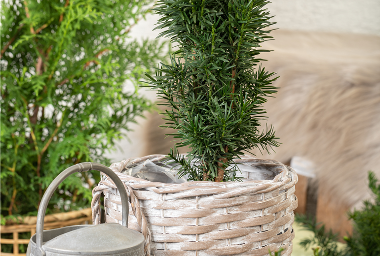 Taxus baccata 'Fastigiata Robusta' überzeugt durch ihre klare, architektonische Form und ist daher ideal, um gestalterische Akzente im Garten zu setzen. Besonders in formalen Gärten oder modernen Anlagen entfaltet sie ihre Wirkung. Ihre immergrüne, dichte Nadelfülle macht sie auch im Winter zu einem ansprechenden Strukturgeber. Zusätzlich bildet sie kleine rote Früchte aus, die zwar zierend, für den Menschen jedoch ungenießbar sind. Dank ihrer dichten Wuchsform eignet sie sich hervorragend als Sichtschutz oder zur Raumgliederung. Trotz all ihrer gestalterischen Vorzüge bleibt sie eine äußerst robuste und langlebige Pflanze. Aufgrund ihrer Nadelblätter ist sie allerdings nicht salzverträglich und sollte daher nicht in unmittelbarer Nähe zu gestreuten Wegen gepflanzt werden.
