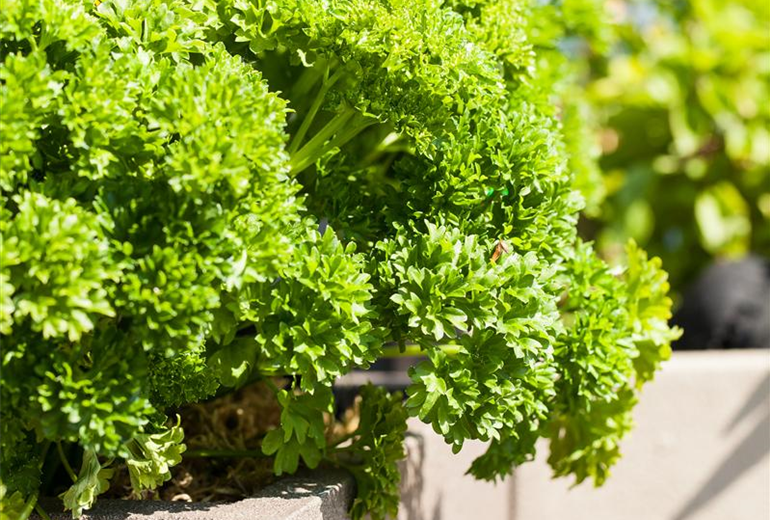 Tipp: Kombinieren Sie Bohnenkraut mit Bohnen oder Basilikum mit Tomaten im Kräuterbeet. Auch Petersilie im Tomatentopf gibt den Früchten geschmacklich eine besondere Note geben.