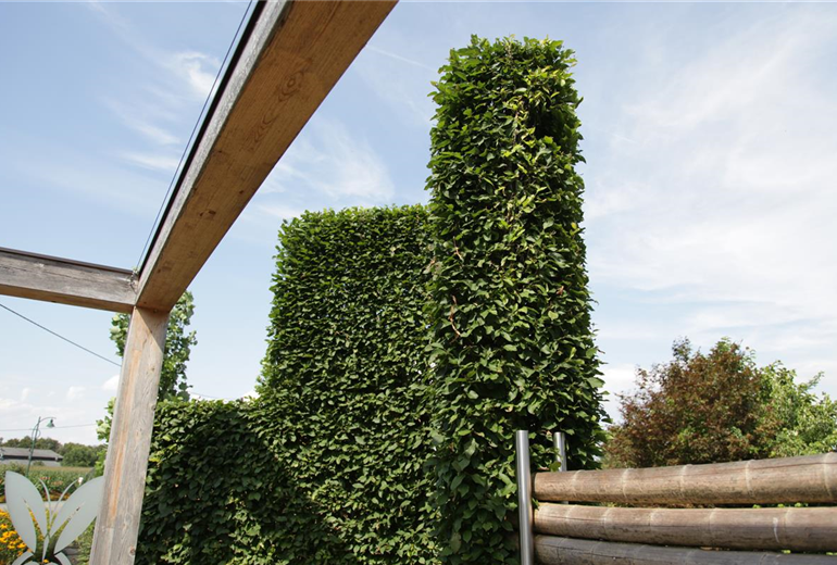 Viele Möglichkeiten Spalierbäume sind in vielen Pflanzenarten und Wuchshöhen bei uns erhältlich. Ob als Buche, Amberbaum mit seiner schönen, vielfältigen Herbstfärbung oder als immergrüne Variante wie Eibe oder Zypresse.