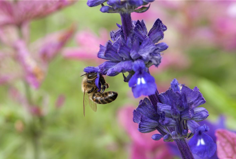 Nicht nur die Pflanze an sich sieht im Garten schön aus – sie zieht auch Bienen und Schmetterlinge an, die man dort beobachten kann. Deshalb wird der Salbei auch zunehmend gern in Vorgärten oder sogar in Kübeln gepflanzt.