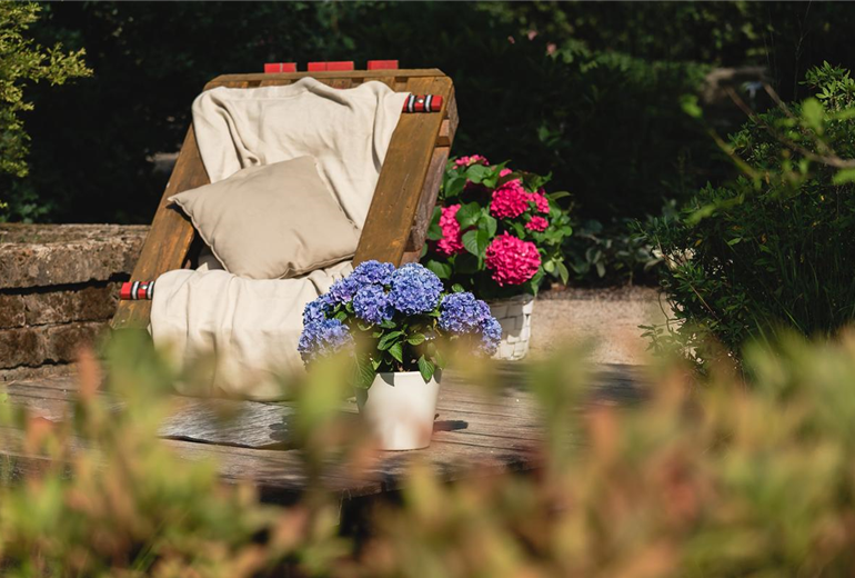 Beim Thema Sitzplatz denken die meisten als erstes an eine großzügige Terrasse, die direkt am Haus und am besten in südlicher Ausrichtung liegt. Aber warum soll das schon alles sein? Erst durch verschiedene Sitzmöglichkeiten und damit variierenden Blickwinkeln erlebt man den Garten viel intensiver. Außerdem kann man so auf unterschiedliche Bedürfnisse und die jahreszeitlichen Veränderungen eingehen. Bei Höchsttemperaturen im Sommer wünscht man sich beispielsweise eher ein schattiges Plätzchen, während man im Frühling und Herbst jeden Sonnenstrahl aufsaugen will. Denken Sie also ruhig weiter als nur bis zur Terrasse. Wie wäre es zum Beispiel mit einem einfachen Klappstuhl und einem Bistrotisch, die schnell mal ans duftende Beet gerückt werden? Oder eine Hängematte, die im lichten Schatten zweier Bäume zum Träumen einlädt? Leichte Möbel, die problemlos zu transportieren sind, geben Ihnen dabei Flexibilität.