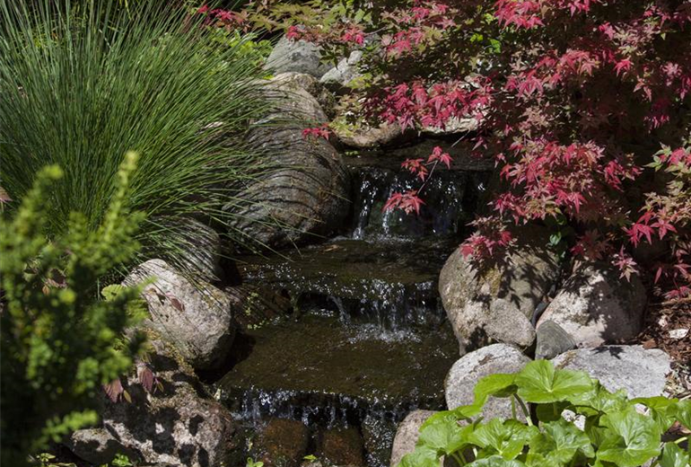 Wenn Sie planen, einen Bachlauf oder einen Wasserfall in Ihrem Garten anzulegen, so suchen Sie sich am besten den höchsten Punkt des Grundstücks aus. Wenn Sie möchten, können Sie diesen noch in Szene setzten, indem Sie ihn womöglich noch mehr erhöhen. Doch Vorsicht, wen das Geplätscher des Wassers stört, der ist besser beraten, die Kaskade nicht allzu sehr in die Tiefe stürzen zu lassen.