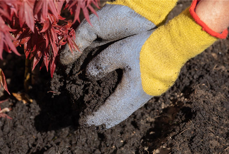 Eine pauschale Regel für die Bodenpflege gibt es nicht. Denn jeder Boden ist anders. Grob unterteilen kann man Gartenböden in leichte, mittelschwere und schwere Böden. Leichte Böden sind sandig, locker und durchlässig. Sie heizen sich schnell auf und speichern Wärme, können Feuchtigkeit und Nährstoffe aber nicht gut speichern. Mittelschwere Lehmböden speichern Feuchtigkeit und Nährstoffe besser, benötigen aber länger, um sich zu erwärmen. Schwere Böden, die einen hohen Tonanteil besitzen, speichern Nährstoffe und Wasser sehr gut. Das hat jedoch den Nachteil, dass sie oft feucht sind, was nicht jede Pflanze verträgt. Sie sind, wenn sie nicht abgetrocknet sind, seifig und mühsam zu bearbeiten. Man kann die Pflanzen, die man im Garten setzen möchte, nach den Ansprüchen an den Boden aussuchen, man kann aber auch durch Zugabe durch Sand für schwere Böden oder Humus für leichte Böden die Erde an die gewünschte Pflanze anpassen. Was allen Böden guttut, ist die regelmäßige Gabe von Kompost, der leicht mit einer Grabgabel in die Erde eingearbeitet wird. Hornspäne sind ebenfalls nützlich, halten trockenen Boden feucht und sind ein wirksamer Langzeitdünger.