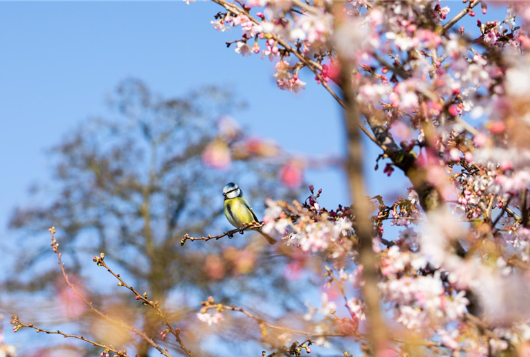 Ein Kirschbaum, der Süßkirschen trägt, erhält mit wachsender Größe in den meisten Fällen auch eine ausladende Krone. Außerdem können Süßkirschen-Bäume bis zu 30 Meter hochwachsen – Sauerkirschen-Bäume erreichen höchstens eine Wuchshöhe von 8 – 11 Metern. Kleinere veredelte Kirschsorten eigenen sich für jeden Garten. Süß- und Sauerkirschen gehören zur Familie der Rosengewächse. Ihre Blüten üben daher einen besonderen Reiz auf Bienen, Hummeln und andere Insekten aus, die für die Befruchtung im Garten zuständig sind. Wer schon einmal einen Kirschbaum in seiner Blütenpracht gesehen hat, kann sich seinem Zauber nicht entziehen. Die Kirschblüte mit bis zu 1 Million Blüten pro Baum ist wunderschön und wird in Japan mit dem speziellen Kirschblütenfest „Hanami“ gefeiert. Ein Kirschbaum blüht früh im Mai und bis in den Juni hinein.