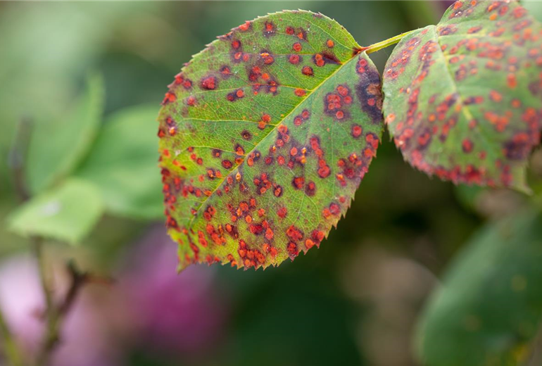 Wenn es um die häufigsten Pflanzenkrankheiten geht, dann sind oft die Blätter befallen und das erkennt man sofort. Wichtig ist aber, dass man sich vorher darüber sicher ist, dass es sich nicht um Schädlinge handelt, sondern wirklich um eine Krankheit. Rostpilze gehören zu den häufig auftretenden Schadbildern. Man erkennt sie an deutlich rostigen Stellen auf den Blättern, die sich zu Rostpusteln entwickeln. Werden diese nicht behandelt, verbreitet sich der Rost auf anderen Pflanzen. Daher greift man hier zu Fungiziden, um die Rostpilze zu bekämpfen. Falscher Mehltau ist auch eine häufige Pflanzenkrankheit und ist an gelben Flecken auf den Blättern zu erkennen, die sich später braun färben und von den Blattadern begrenzt sind. Auf der Blattunterseite befindet sich ein weißer Pilzbelag. Auch hier gibt es spezielle Mittel, die dem falschen Mehltau den Kampf ansagen. Schorfkrankheiten erkennt man nach der Blüte vor allem an Apfel oder Rose. Und zwar in Form von schwarzen Flecken auf den Blättern und eine rissige Schale der Früchte. Auch hier gibt es spezielle Mittel, mit der richtigen Pflege und regelmäßigem Auslichtungsschnitt kann man aber gut vorbeugen.
