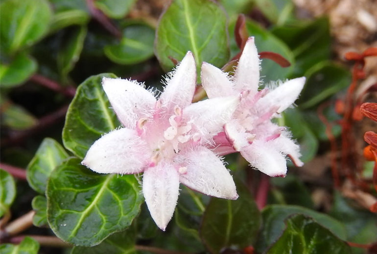 Mitchella repens stammt aus den Wäldern Nordamerikas. Die dort lebenden indigenen Völker nutzten sie als Heilpflanze. Die Pflanze ist pflegeleicht, widerstandsfähig und winterhart. Die ideale Wahl als robuster Bodendecker.